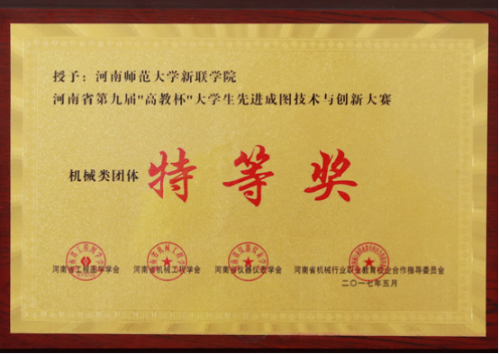 5月20日至21日,由河南省机械工程图学会联合举办的第九届“高教杯”河南省大学生先进成图技术创新大赛于河南机电职业学院隆重举行。河南师范大学新联学院机电工程学院积极参与,并在此次机械制图大赛中再创佳绩,获河南省团体特等奖。