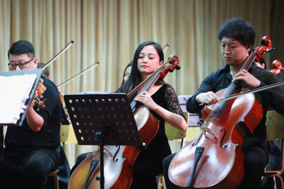 乐团先后演奏了《小夜曲》《蓝色多瑙河》《我的太阳》等经典曲目。艺术家们在演奏间隙,还向同学们普及了乐理知识,并邀请艺术学院师生同台表演,赢得了雷鸣般的掌声。