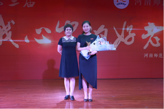 河南省教育厅民管处处长董玉民为宋丽娜老师颁奖