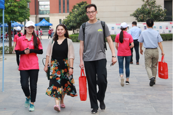 志愿者引领参会高校代表进入会场