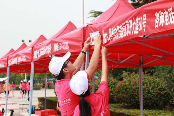 志愿者组装搭建喷绘