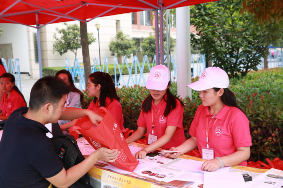 新联学院志愿者分成15支小分队,为咨询大会提供应急通信、路线引导、物品发放、现场咨询、安全保卫等各项工作服务,大会现场处处可见他们忙碌的身影,身穿红色T恤的志愿者成为高招咨询会上流动的靓丽风景。