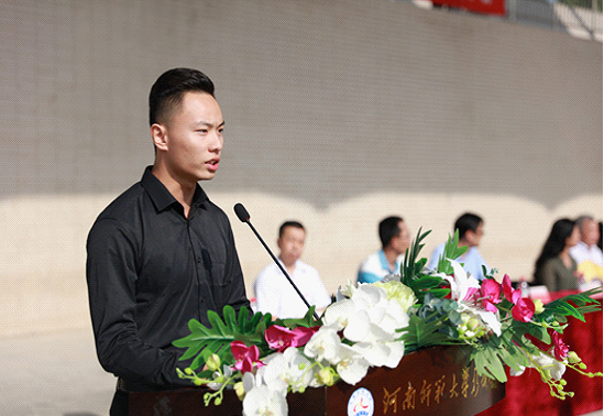 教师代表、文学与传媒学院高丽佳老师希望全体新生要了解“鼎立中原,百年新联”的宏伟愿景,要牢记“立德树人,报国利民”的使命要求,要恪守“人格、能力、责任、奉献”的校风校训。她祝愿广大新生能够有个充实而完美的大学生活,认真生活,努力微笑。在校生代表胡培深向2017级新生介绍了新联学院优秀的教育教学环境和浓郁的学习氛围,并分享了自己学习生活中的心得体会,号召全体新生好好学习,为美好的未来拼搏奋斗。新生代表李咏春代表2017级新生向校领导及老师表达由衷的谢意,感谢他们亲切的关怀和热情的帮助。她说,新学期新希望,知识改变命运,态度决定未来,为了早日实现我们的理想,我们要严格要求自己,在新联学院的这片热土上,同心,同德,同行,共同铸造新的辉煌!