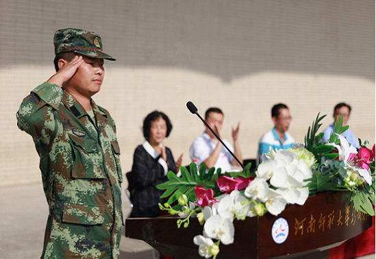 9月13日,河南师范大学新联学院隆重举行2017级新生开学典礼暨军训动员大会。校领导、帮训部队首长、迎新小组成员、全体帮训教官、新生辅导员和全体2017级学生参加大会。大会由副校长郑敏主持。