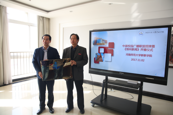 11月2日,中原校园广播联盟授牌暨《郑州新闻》开播仪式在我校明德楼七楼会议室举行。副校长陈江风、党委常务副书记段其旺、副校长郑敏、相关部门负责人和广播站部分学生代表出席。仪式由副校长郑敏主持。