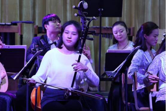 河南民族乐团的艺术家先后演奏了民族管弦乐《弹起我心爱的土琵琶》、笛子齐奏《扬鞭催马运粮忙》、唢呐独奏《百鸟朝凤》等经典曲目。我校艺术学院青年教师任贝贝与河南民族乐团的音乐家同台表演二胡齐奏《新赛马》,展现了我校青年教师的良好风貌。
