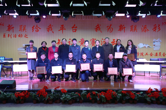 本次比赛是“新联给我平台 我为新联添彩”系列活动的一部分,竞赛试题包括十九大报告、中国传统文化常识、新联学院发展规划、民办教育促进法、新联学院组织文化大纲等内容。初赛阶段,来自10个分工会小组的40名选手通过“共渡险关”必答题和“勇闯奇关”抢答题两个环节决出5支队伍进入决赛。决赛阶段,参赛选手沉着冷静,团队紧密合作,你争我夺、高潮不断。“争分夺秒”抢答环节中,商学院分工会代表队在最后一题实现反超,夺得本次大赛的一等奖;教育学院分工会获得二等奖,土木建筑工程学院分工会获得三等奖,行政第二分工会、文学与传媒学院分工会获优秀奖。理事长李香枝等分别为获奖单位代表颁奖。