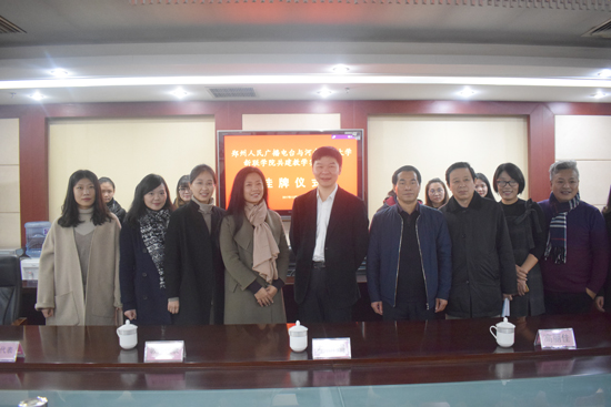 12月15日,河南师范大学新联学院实践基地在郑州人民广播电台挂牌,文学与传媒学院院长左丽娟与郑州人民广播电台台长葛向阳在电台共同揭牌,并就双方的深入合作举行了交流会。