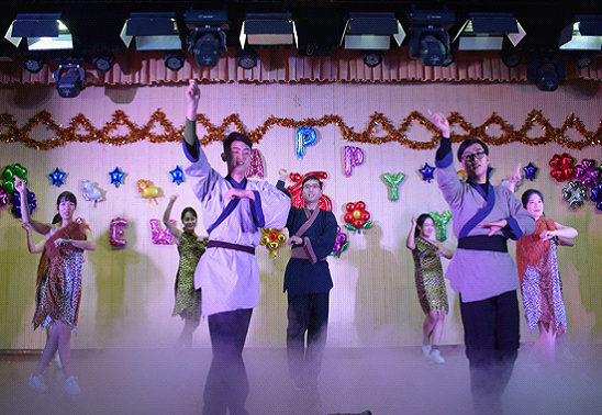 晚会共分为三个篇章,包括歌曲,舞蹈、相声、乐器演奏、武术表演等12个节目,形式多样,内容丰富。中场抽奖环节更是将现场气氛推向高潮。最后,晚会在同学的大合唱中落下帷幕。