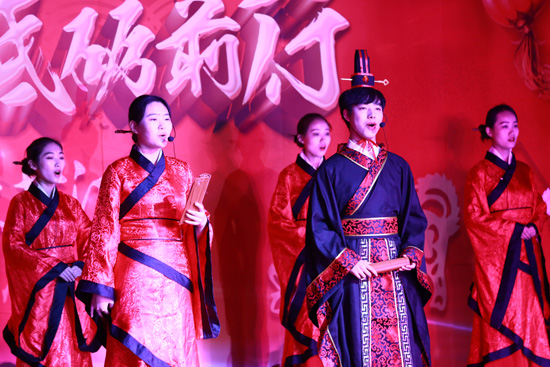 报告厅里,掌声不断,欢乐荡漾。精心组织编排的歌舞、小品、诗朗诵、戏曲等节目精彩纷呈,为现场师生奉献了一台高质量的文艺演出。开场舞《闹新春》把大家带入了辞旧迎新过大年的浓厚氛围,表演唱《逛新联》从一个学生父女逛新联的全新视角描绘了学校的发展现状,吟诵《江城子·密州出猎》则是新联学院“应用型、双特色、国际化”定位下大学生吟诵团受美国高校邀请,分别在湖郡学院和爱荷华州立大学举办“亲情中华”古诗词吟诵赏听会上的佳作。歌曲、戏曲、舞蹈串烧释放了新联师生的青春活力,第三届“我心中的好老师”获奖代表刘德润、宋丽娜为全校师生带来新春祝福,诠释了新联教师自强不息,追求卓越的精神。