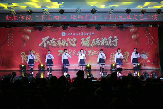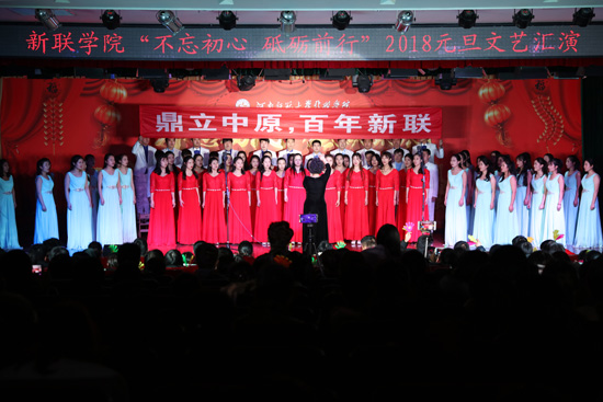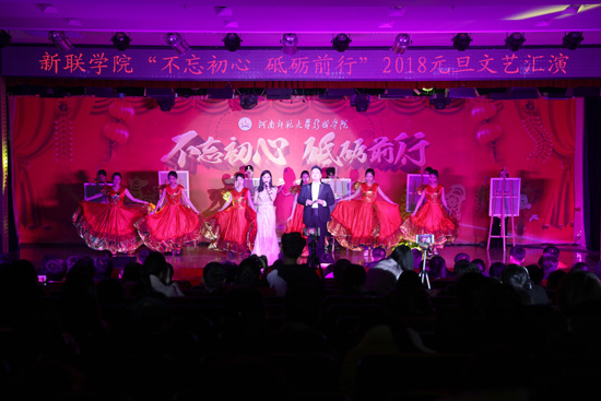 12月27日下午,河南师范大学新联学院报告厅座无虚席,一场主题为“不忘初心·砥砺前行”的2018年元旦文艺晚会在这里隆重举行。新联学院理事长李香枝携领导班子与全校教职工及学生一起共忆过去,展望未来,凝聚磅礴力量开启新联学院新时代的发展新篇章。