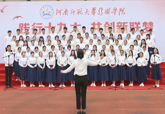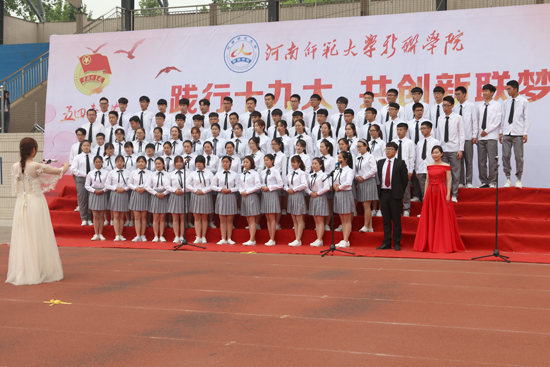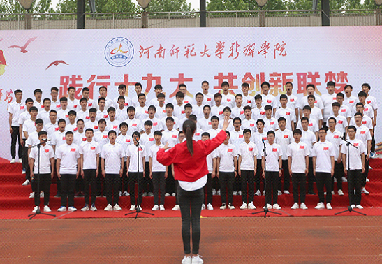 践行十九大,共创新联梦。4月25日,河南师范大学新联学院2018年“五四主题歌会”在校体育场隆重举行,校党委常务副书记段其旺以及相关部门负责人、各二级学院院长、党支部书记、团总支书记出席,千余名师生共同参与。