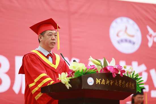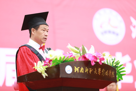 新联学院院长金绪泽教授向圆满完成学业的全体毕业生表示热烈的祝贺,向辛勤养育毕业生成长的父母、悉心教导毕业生成才的老师表示衷心的感谢。他寄语毕业生不忘初心、牢记使命、砥砺前行。