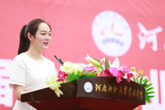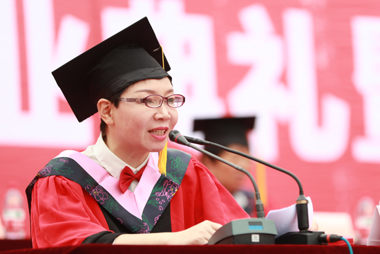 毕业生代表、文学与传媒学院刘一帆同学代表全体毕业生向母校的老师们表达了深深的感激之情。她号召所有毕业生带着对社会的责任感,发扬自强不息、追求卓越的新联精神,在社会的各行各业里尽情施展才华。