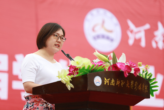 外国语学院教师荆艳鹤作为教师代表表达了全体老师对毕业学子的期望和祝福。她期待学生常回学校看看,尝尝食堂的饭菜、看看校园的变化、听听老师的叨叨、谈谈自己的感受。