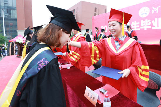 典礼仪式在雄壮的国歌声中拉开帷幕。副校长陈江风宣读了《河南师范大学新联学院学士学位授予决定》,理事长李香枝女士和学校党政领导、学位委员会专家为毕业生代表颁发学位证书、拨苏正冠。
