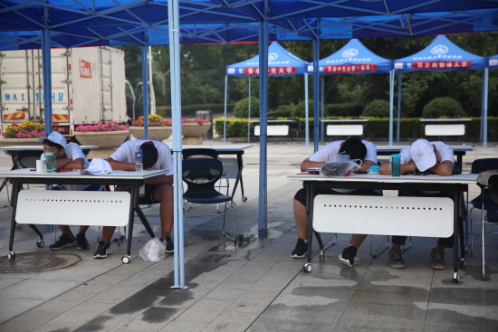 在高招咨询会临近前夕,志愿者们为使各高校区域分布更加合理,充分利用我校场地,对各展位进行不断的规划和调整,保证前来咨询的学生和家长能够顺利找到自己的心仪院校。很多志愿者由于工作原因,一天只能在整个活动结束后吃一顿饭,喝一瓶水。为保证各高校的工作顺利进行,志愿者们还进行了值班分工,部分志愿者要在25日凌晨到活动现场值夜班,直到活动开始,也正是志愿者们的这种负责任的工作态度,获得了参展高校的一致好评。