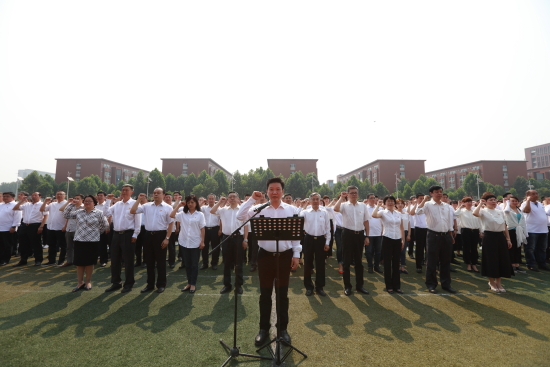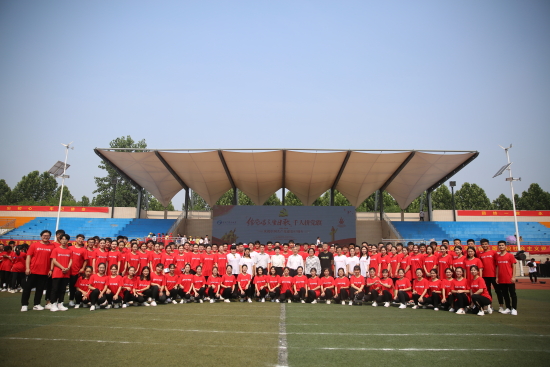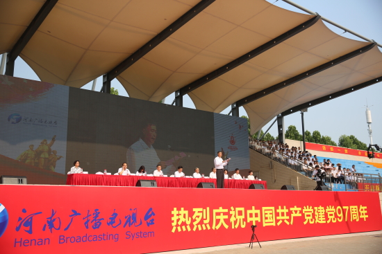 7月1日,由河南广播电视台、恒丰银行郑州分行主办,河南师范大学新联学院协办的“给党唱支生日歌”大型文化系列活动之一“千人拼党旗”在河南师范大学新联学院隆重上演。来自学校的1014名学生身着统一服装在奔跑中拼出面积1014平方米的鲜艳党旗,以青春的力量向党的97岁生日献礼!新联学院理事仉建涛、常务副书记段其旺、副校长郑敏、副校长梁周敏等参加了此次主题活动。段其旺副书记代表学校致辞。