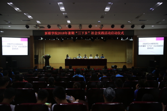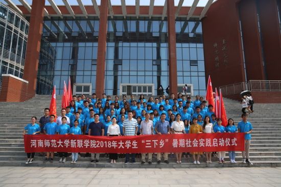 7月7日上午,河南师范大学新联学院2018年大学生暑期“三下乡”社会实践活动启动仪式在我校报告厅隆重举行。我校常务副书记段其旺 、教务处副处长李麒 、校团委学生工作科科长周云剑、团委老师李小玲等各院系相关负责人,以及全体参加“三下乡”活动的带队老师和同学参加了启动仪式。仪式由团委老师李小玲主持。