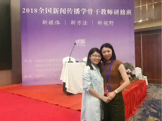 2018年7月29日,河南师范大学新联学院文学与传媒学院李娜、姚敏两位老师前往四川成都参加2018全国新闻传播学骨干教师研修班。本次研修班由中国高等教育学会新闻学与传播学专业委员会、中国人民大学新闻学院、中国人民大学出版社共同主办,成都理工大学传播科学与艺术学院协办。共有来自全国27个省(市、区)的338位新闻传播学一线教师参与此次研修班。