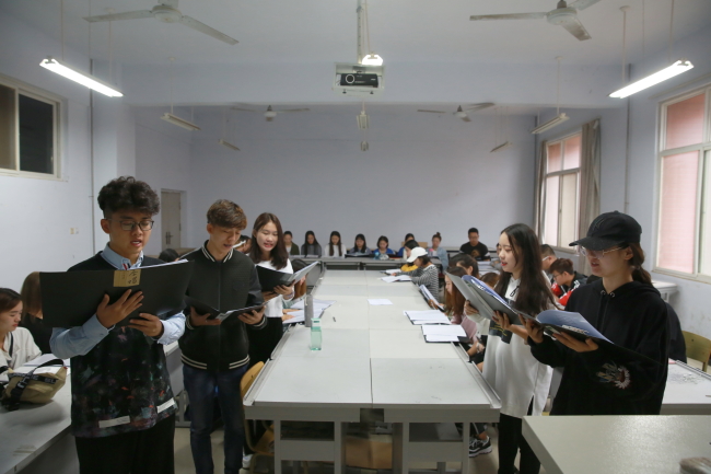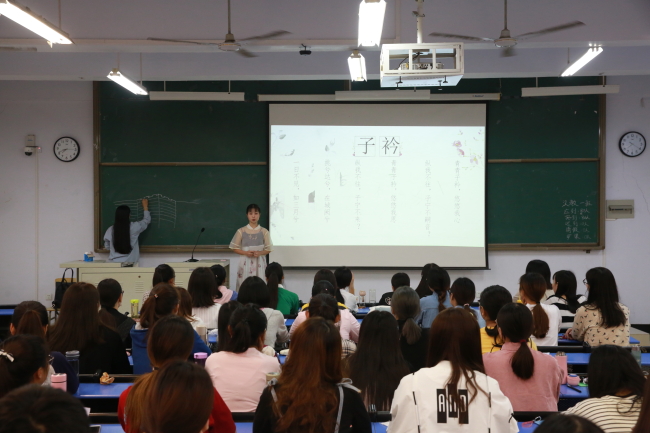 校语委9月9日下发了《关于开展“百篇经典诵读”---特色早读活动的通知》,在全校范围内启动了为期两周的特色晨读活动。活动要求上午第1节有课的班级提前30分钟进班,由普通话水平过硬的学生代表领读“百篇经典篇目”材料。各二级学院根据通知要求,结合专业特点,创造性开展了各式各样的晨读活动,如:文学与传媒学院王佳老师指导的的经典百篇诵读——古今“思慕”主题诗歌领读与分享,“分享早读”上此次百篇经典诵读活动选择了古今诗词中的“思慕”主题名篇,由学生分组领读和分享。领读要求普通话标准,抑扬顿挫,赋有情感。分享要求分析诗歌的内容和个人体会,鉴赏诗歌的审美风格和修辞艺术。各小组发挥才华、创新形式进行展示,如《诗经·关雎》用吟诵方式展现韵律美感,《诗经·子衿》用现场作画方式描摹意境,《教我如何不想她》用二人对诵方式渲染情感氛围,文学与艺术相融,让现场沉浸在诗情画意之中。艺术学院的袁多艺老师指导的“配乐诗朗诵”等形式新颖,效果突出,不同类型的经典篇目加以或磅礴大气,或灵动悠扬,或柔和舒缓的音乐,朗诵者的被情感更容易的调动起来,诗歌蕴含的氛围也更容易被营造出来,同时也更容易使听众在欣赏的过程中进入朗诵者和诗歌所努力规定的情境中去。