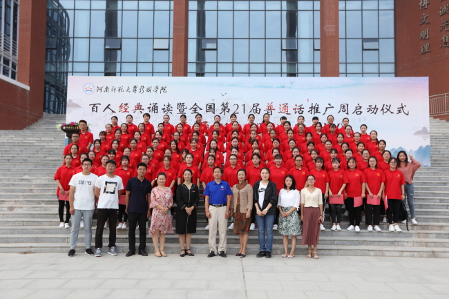 9月12日,百人经典诵读暨第21届全国推广普通话宣传周启动仪式在校图书馆前举行。副校长陈江风,校长助理冯蔚,校语委、校团委部分领导以及各二级学院师生代表参加了启动仪式。