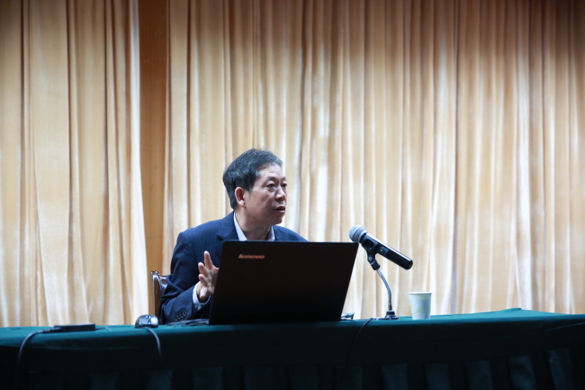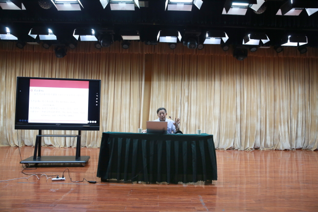 牛保义教授就新形势下,英语学习如何更好的结合互联网+、大数据展开了论述。在讲座结束之际老师和学生们用心举手询问了许多问题,牛教授均耐心作了详细解答。肖坤学教授从认知语言学角度出发,对英语书面语中常见的一种典型句型和独特语言现象——英语无灵主语句进行解析,探究英语无灵主语句的生成机制、语用特征和汉译途径,肖坤学教授深入浅出的讲解使得外国语学院广大师生获益匪浅。同时,陆道夫教授针对外国语学院学生考研问题进行了解读,对我院有考研意向及正在考研准备工作中的同学指明了方向。