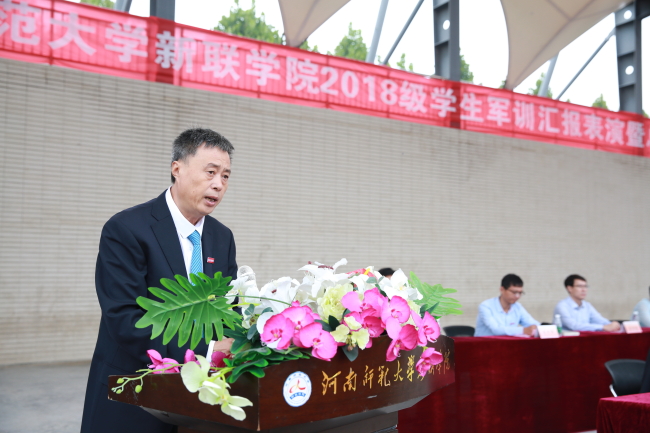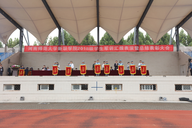 9月20日,河南师范大学新联学院2018级新生军训总结表彰大会在学校操场隆重举行。校领导李悦刚、陈江风、段其旺、郑敏、全体帮训教官及2018级新生参加了此次大会。学工处处长张学栋主持大会。