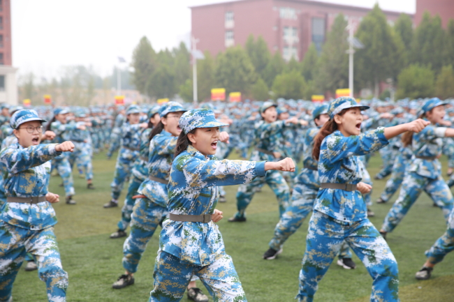 庄严的国歌声后,校领导对学生军训连队进行检阅。帮训教官一声令下,分列式正式拉开序幕。参训新生目光坚定,伴随着激昂的乐曲,迈着整齐划一的步伐依次走过主席台。随后,部分新生带来队列会操、军体拳、擒敌拳动作表演,年轻的面庞表情坚毅,嘹亮的口号响彻校园,充分展示了新生求知创新、敢于迎接挑战的顽强意志。