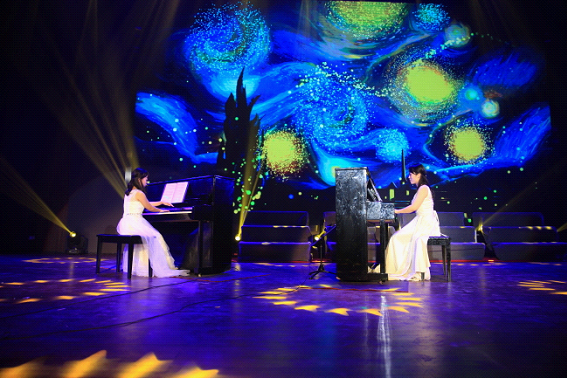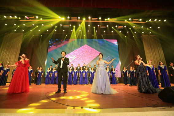 晚上7点,健行馆内流光溢彩,热闹非凡。整场晚会节目精彩纷呈,高潮迭起。晚会在活力四射的开场舞《就现在》中拉开帷幕。一组通俗歌曲联唱给现场观众的心灵带来清新的洗礼。现代舞《出发》与古典舞《云卷•云舒》新老辉映,一会动感十足一会娴雅幽静。群口快板《新联颂》用快板形式娓娓讲述新联故事及发展,让人记忆犹新。武术表演《东方武韵》演绎了古老的太极及中国传统武术。民族钢琴联奏《渔舟唱晚》、《River fiows in you》让全体观众感受到了不一样的音乐魅力。一曲《春天的芭蕾》让观众有了重新启航的动力。合唱《我爱你中国》则表达了新联师生庆祝祖国生日,向祖国献礼的美好心情。最后,晚会在大合唱《再一次出发》中完美落幕。